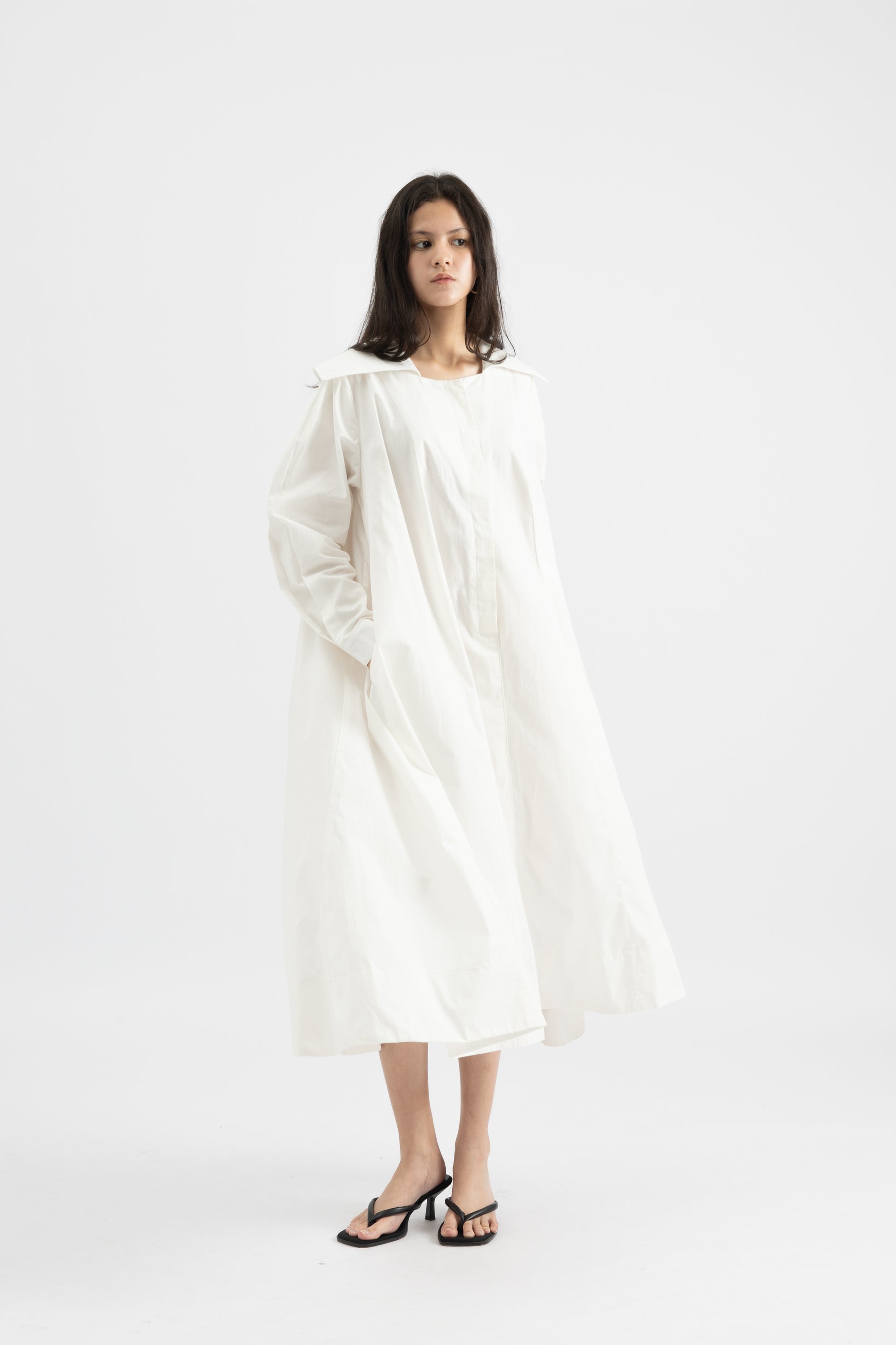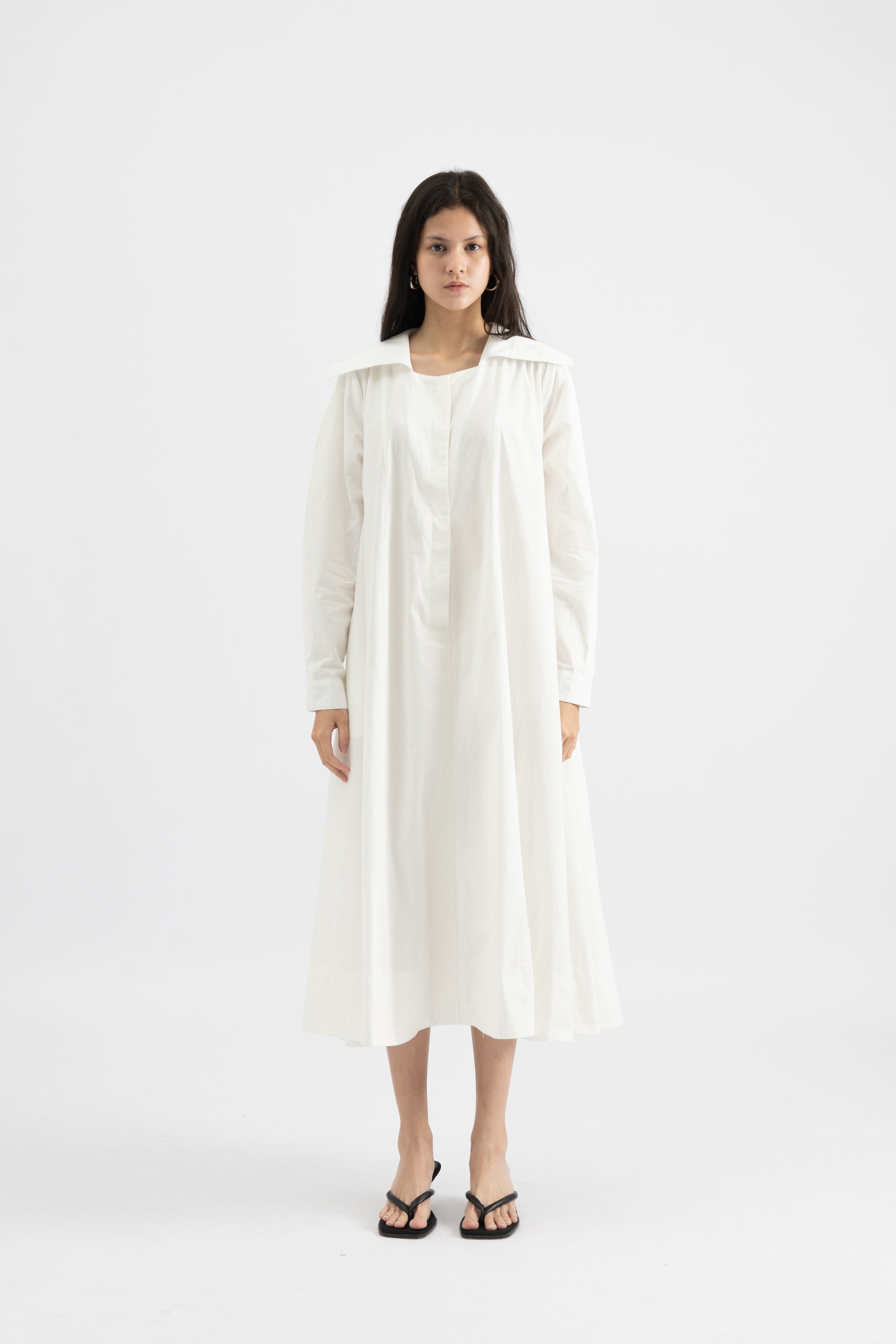 The Iris Dress in Off White is a classic piece with elegant simplicity. This dress features a clean design that works well for many occasions, from casual outings to more formal events.