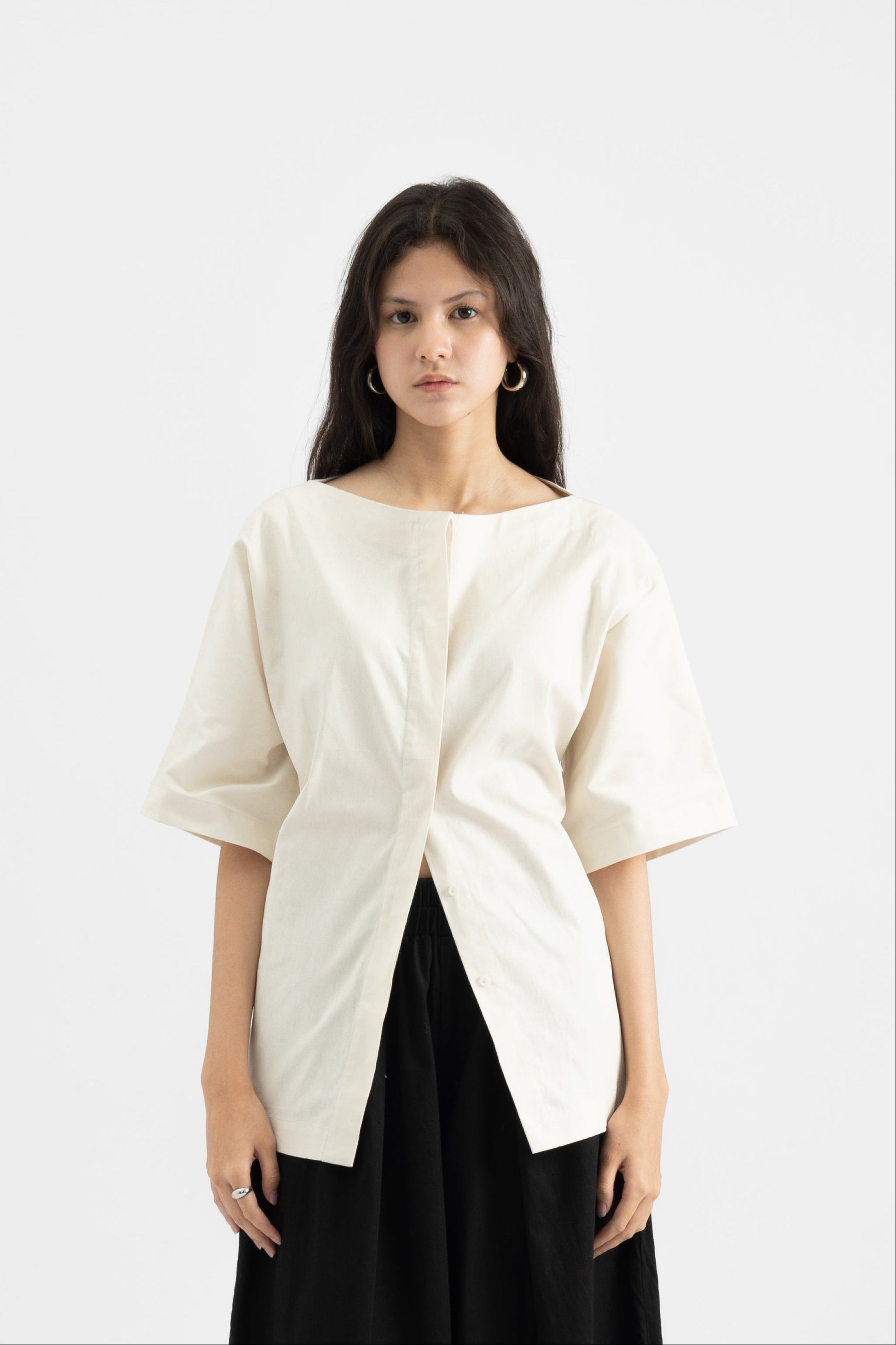 Crafted in a soft, luminous pearl shade, this top offers a refined aesthetic that transitions seamlessly from casual days to evening occasions. The thoughtful design flatters various body types while maintaining a comfortable, breathable fit.