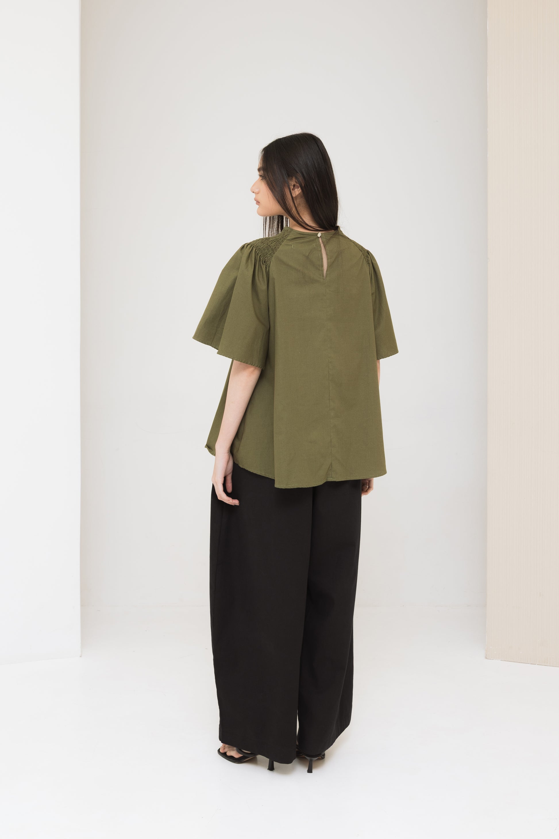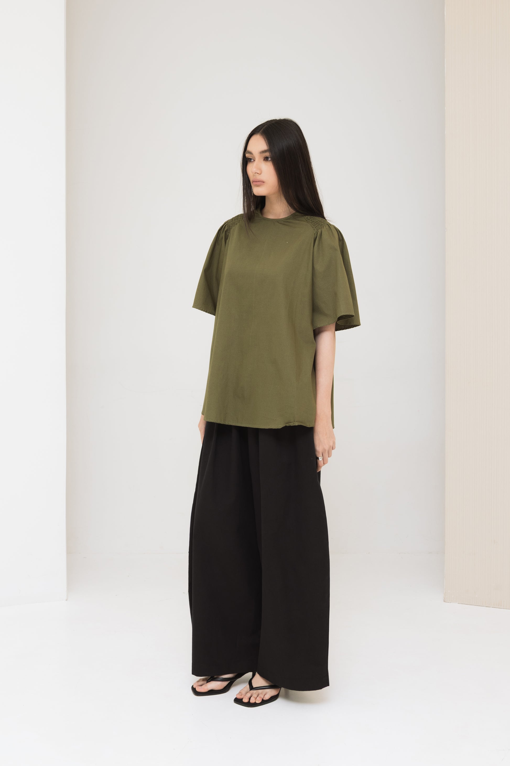 Tilda top in Olive paired with Liam Pants in Black